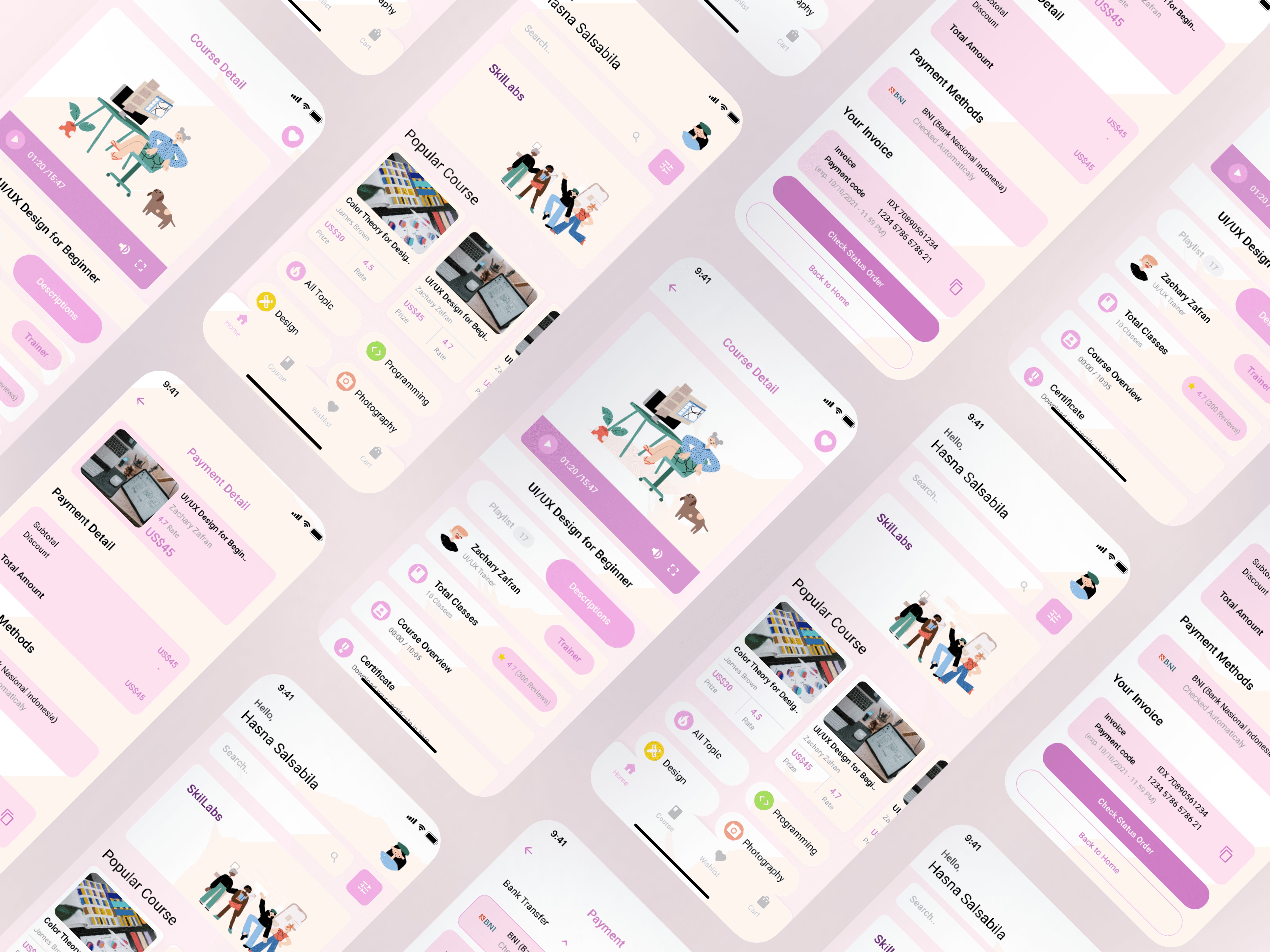 The design includes personalized dashboards, progress overview, and interactive lesson cards. The app flow was designed to minimize drop-offs and encourage daily engagement.