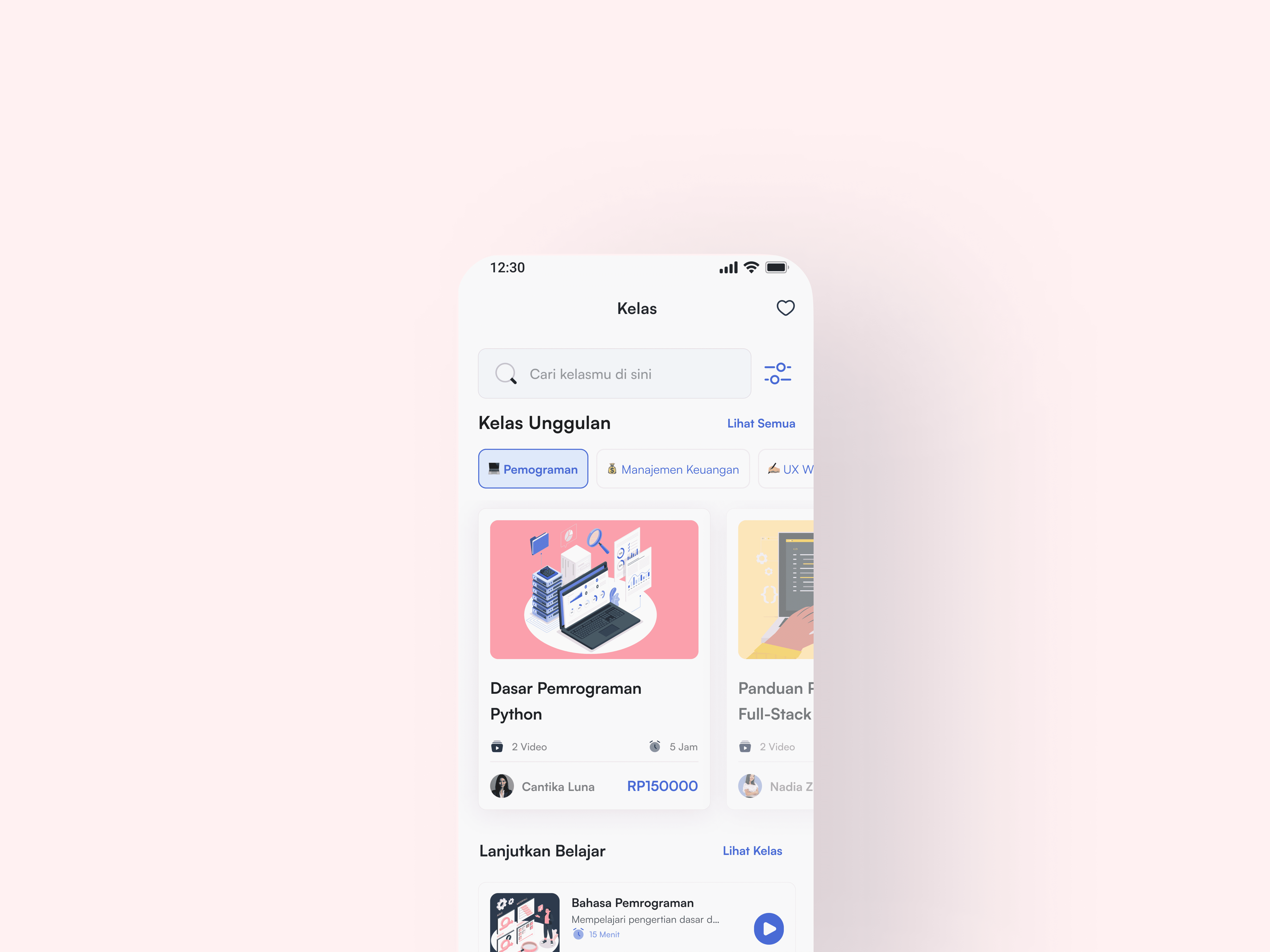 The visual design uses soft tones and accessible layouts to keep learners motivated and comfortable. The structure allows users to easily resume learning, track milestones, and discover new modules based on their goals.